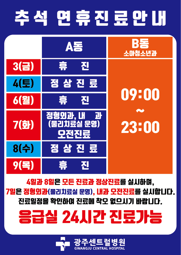 2025년 추석연휴 진료일정안내